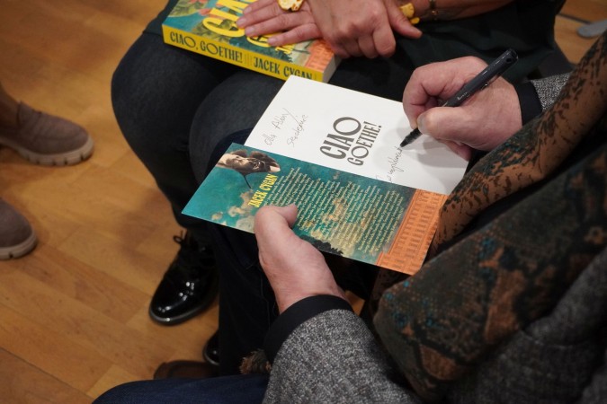 Głównym tematem spotkania była najnowsza książka Jacka Cygana „Ciao, Goethe! Śladami Goethego w Italii”, w której opisuje swoją podróż śladami niemieckiego pisarza. Gość opowiedział, że jego fascynacja niemieckim poetą zaczęła się w Weimarze – miejscu, gdzie przez wiele lat mieszkał Goethe. To właśnie po wizycie w tym miejscu zaczął zgłębiać jego twórczość i przeczytał książkę o dwuletniej podróży autora do Włoch. Jak przyznał, lektura ta zafascynowała nie tylko jego, ale również jego żonę. Dlatego wspólnie postanowili wyruszyć w tę niezwykłą wyprawę. Ich własna podróż trwała jednak znacznie dłużej – prawie 20 lat.