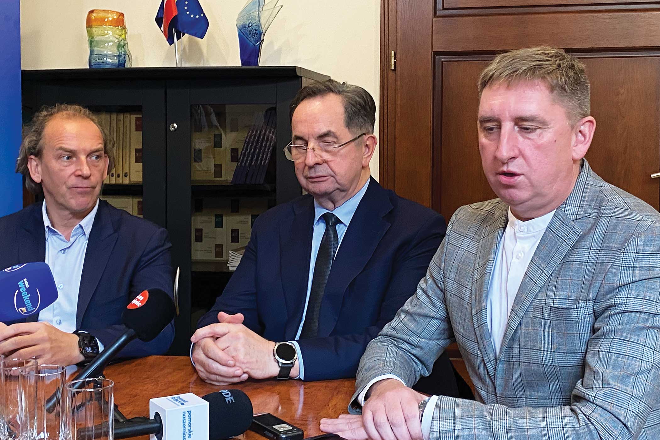 W czwartek (23.10.2025) w Starostwie Powiatowym w Chojnicach odbyło się spotkanie poświęcone inwestycjom drogowym na Pomorzu, w szczególności postępom prac na drodze krajowej nr 22 oraz koncepcji trasy Via Pomerania. W briefingu uczestniczyli poseł Stanisław Lamczyk, wiceprzewodniczący sejmowej Komisji Infrastruktury i przewodniczący parlamentarnego zespołu ds. Via Pomerania, Karol Markowski, dyrektor gdańskiego oddziału Generalnej Dyrekcji Dróg Krajowych i Autostrad, oraz Łukasz Kubiak, ekspert zespołu parlamentarnego.