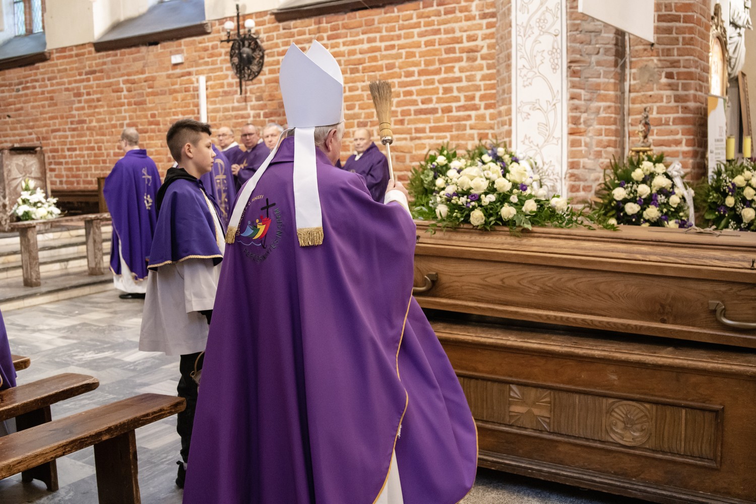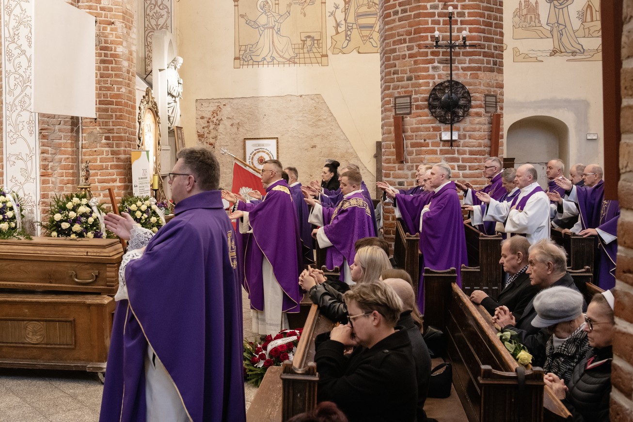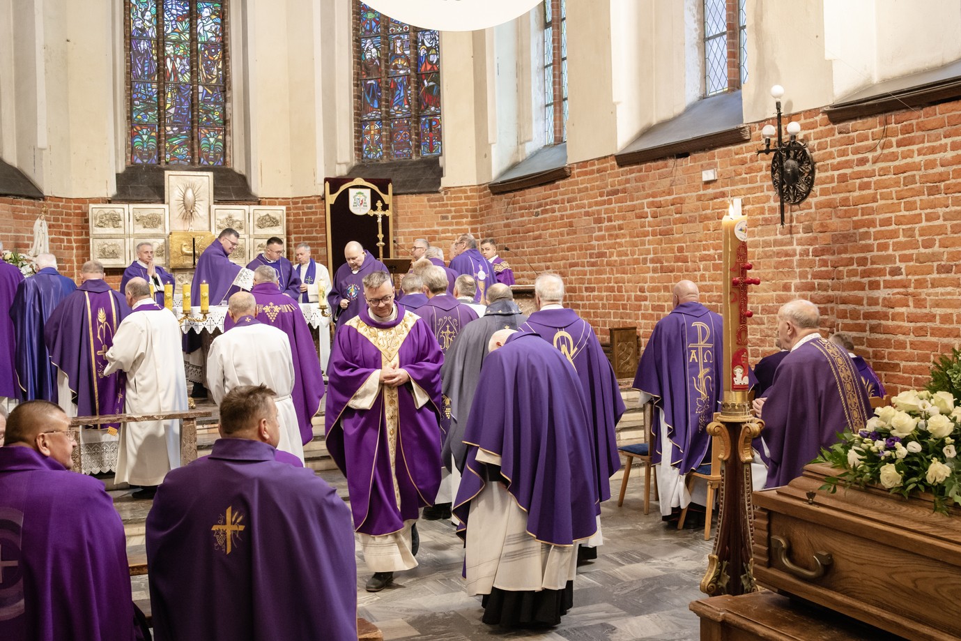 Nabożeństwu przewodniczył biskup pelpliński ks. Ryszard Kasyna, a koncelebrowało je kilkudziesięciu kapłanów z diecezji pelplińskiej, toruńskiej, bydgoskiej i gdańskiej. W świątyni zgromadziły się tłumy mieszkańców, duchowieństwo, samorządowcy i przyjaciele zmarłego. Uroczystość miała charakter głęboko duchowy, a jednocześnie była pełna wdzięczności i wspomnień o życiu człowieka, który całe swoje życie poświęcił służbie drugiemu człowiekowi.