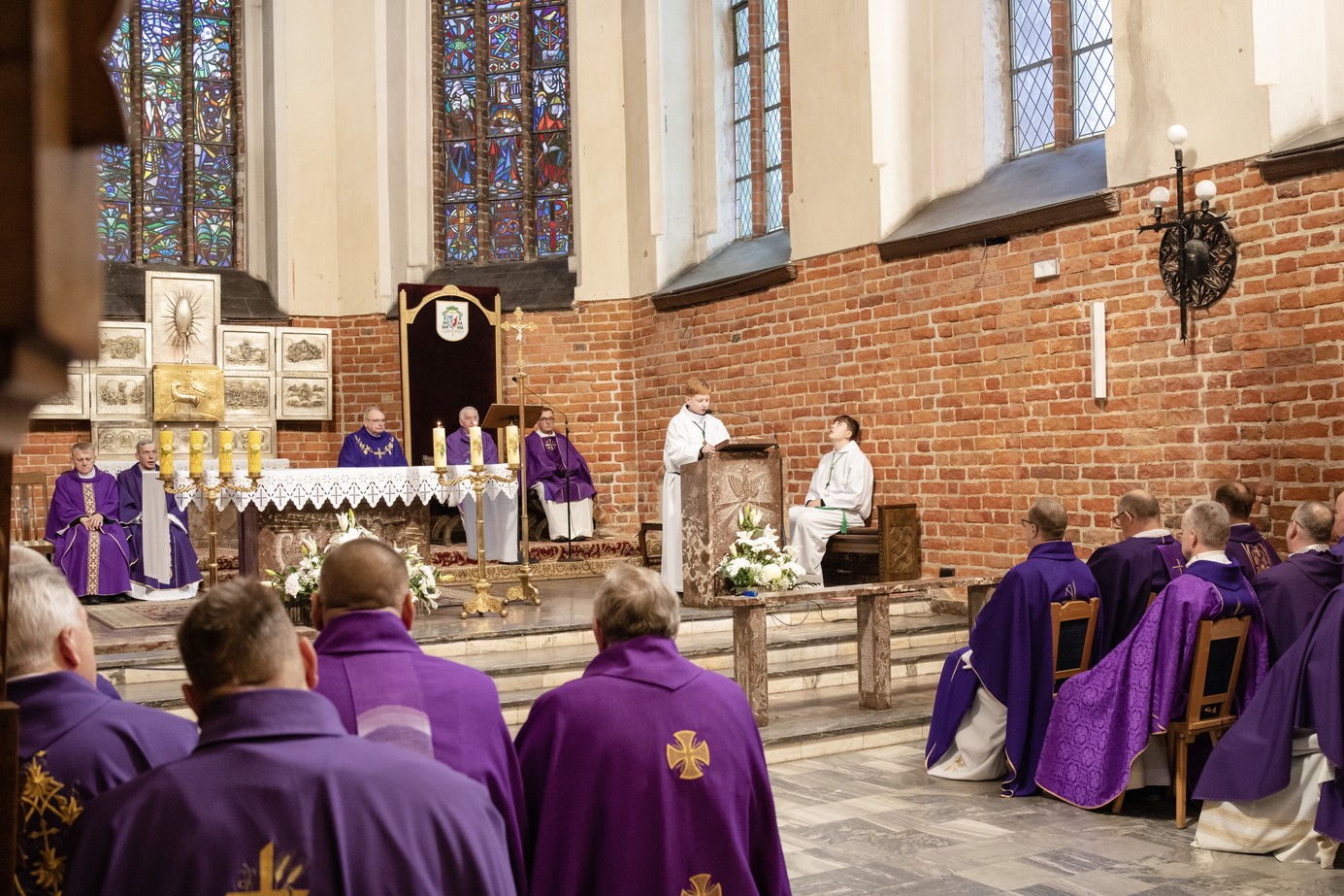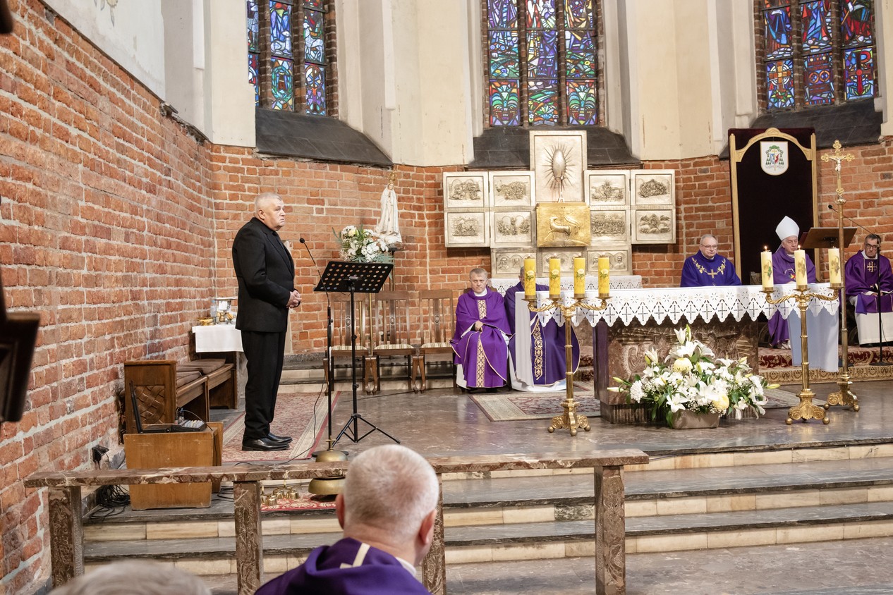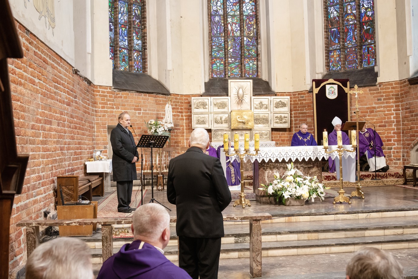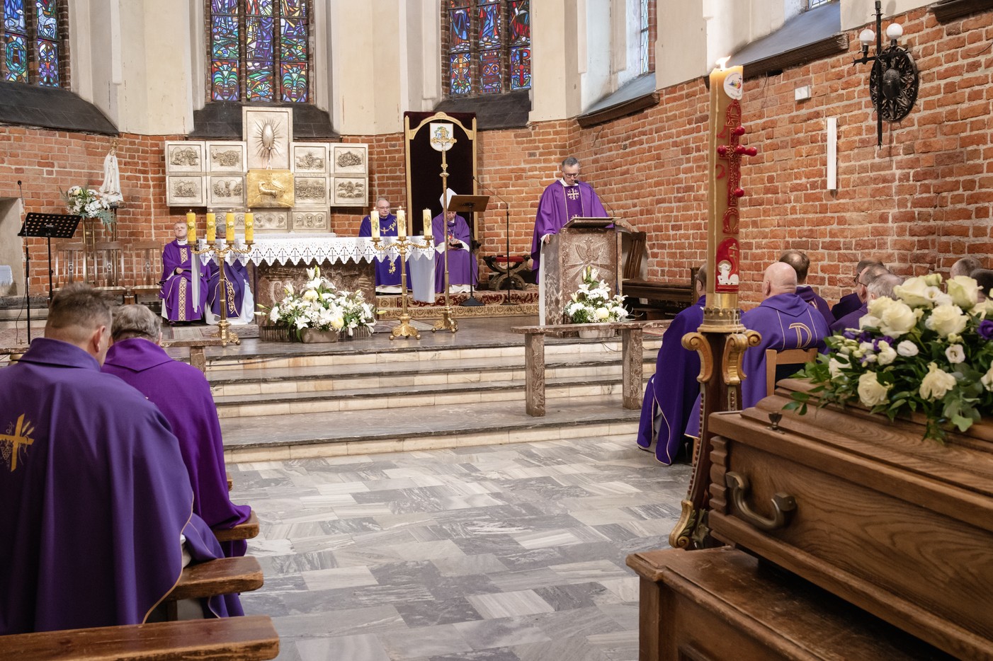 Nabożeństwu przewodniczył biskup pelpliński ks. Ryszard Kasyna, a koncelebrowało je kilkudziesięciu kapłanów z diecezji pelplińskiej, toruńskiej, bydgoskiej i gdańskiej. W świątyni zgromadziły się tłumy mieszkańców, duchowieństwo, samorządowcy i przyjaciele zmarłego. Uroczystość miała charakter głęboko duchowy, a jednocześnie była pełna wdzięczności i wspomnień o życiu człowieka, który całe swoje życie poświęcił służbie drugiemu człowiekowi.