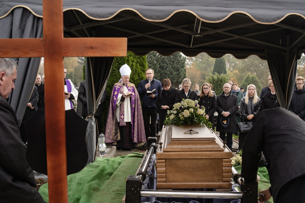 Po zakończeniu mszy świętej kondukt żałobny udał się na Cmentarz Komunalny w Chojnicach, gdzie zmarłego pożegnali m.in. biskup Ryszard Kasyna, licznie zebrani duchowni i siostry zakonne, wójt Zbigniew Szczepański, przewodniczący Rady Miejskiej Maciej Polasik, były Burmistrz Chojnic Andrzej Gąsiorowski, przedstawiciele władz miasta i powiatu oraz liczni mieszkańcy.