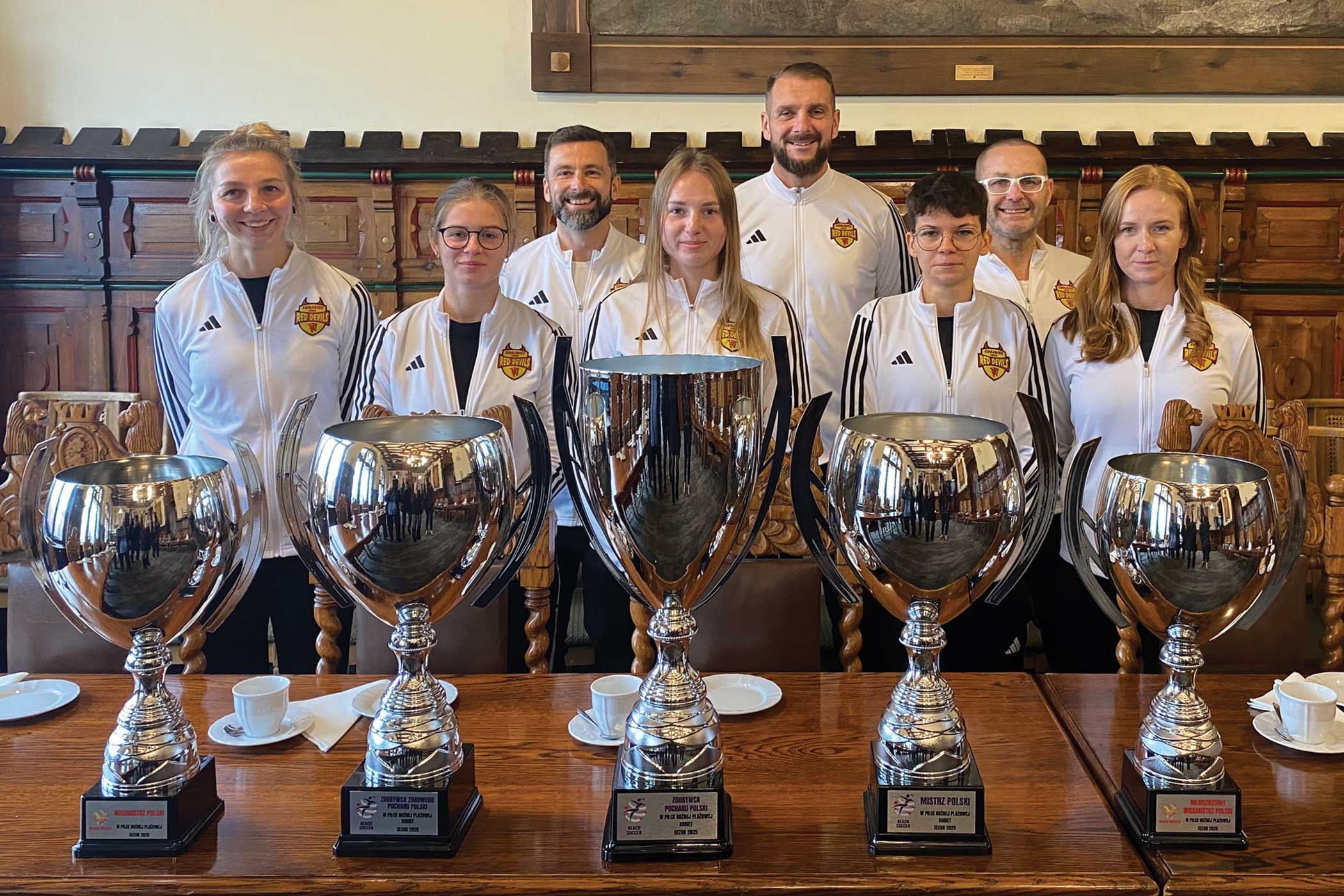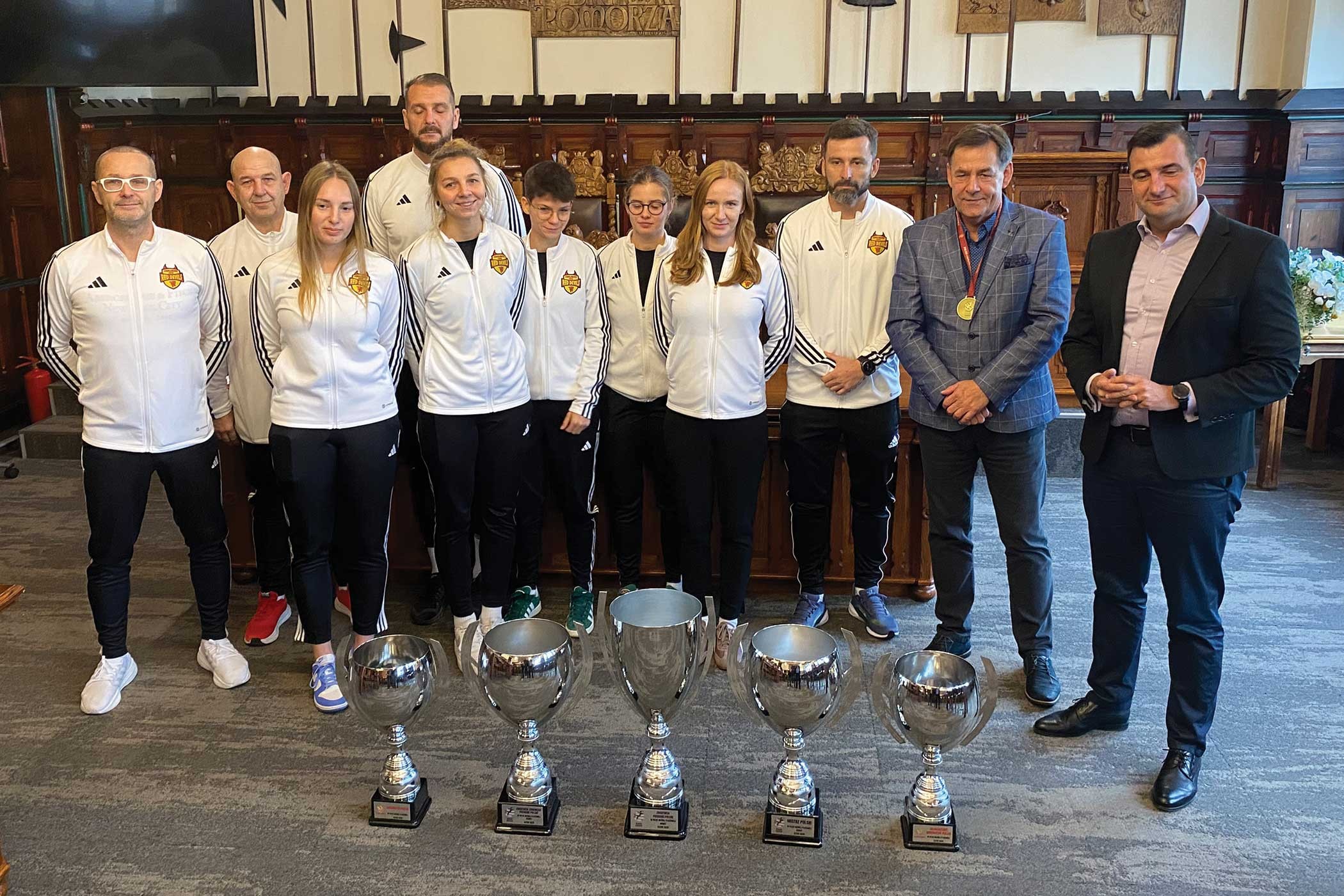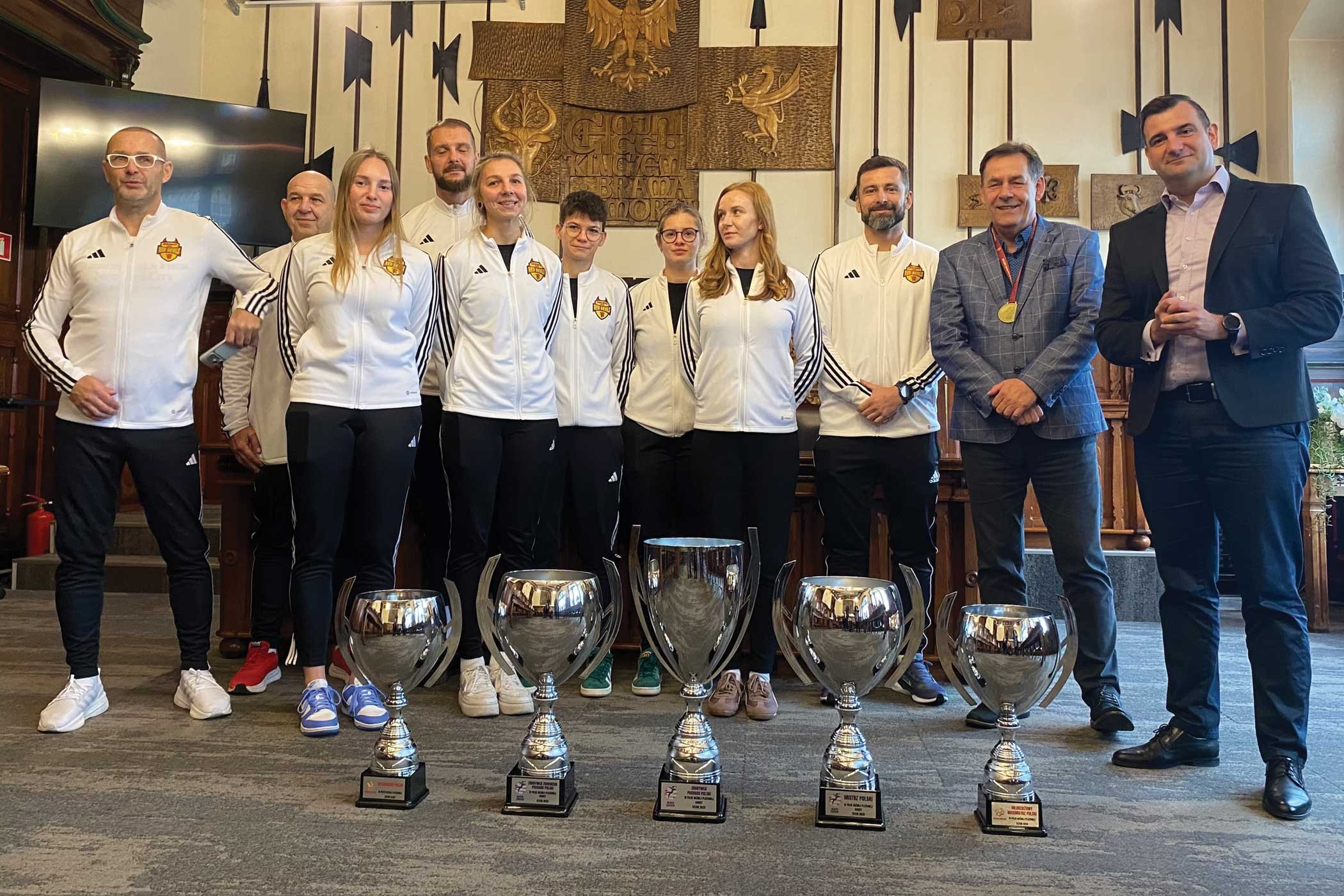Wśród sukcesów piłkarek plażowych w bieżącym roku znalazły się: mistrzostwo Polski kobiet w piłce nożnej plażowej 2025, wicemistrzostwo Polski w piłce plażowej, zimowy puchar Polski w piłce nożnej plażowej kobiet, puchar Polski w piłce nożnej plażowej kobiet oraz wicemistrzostwo Polski w piłce nożnej plażowej za sezon 2025. To ogromne sukcesy, a za nimi równie imponujące puchary. Reprezentanci klubu przynieśli na spotkanie w ratuszu swoje trofea.
