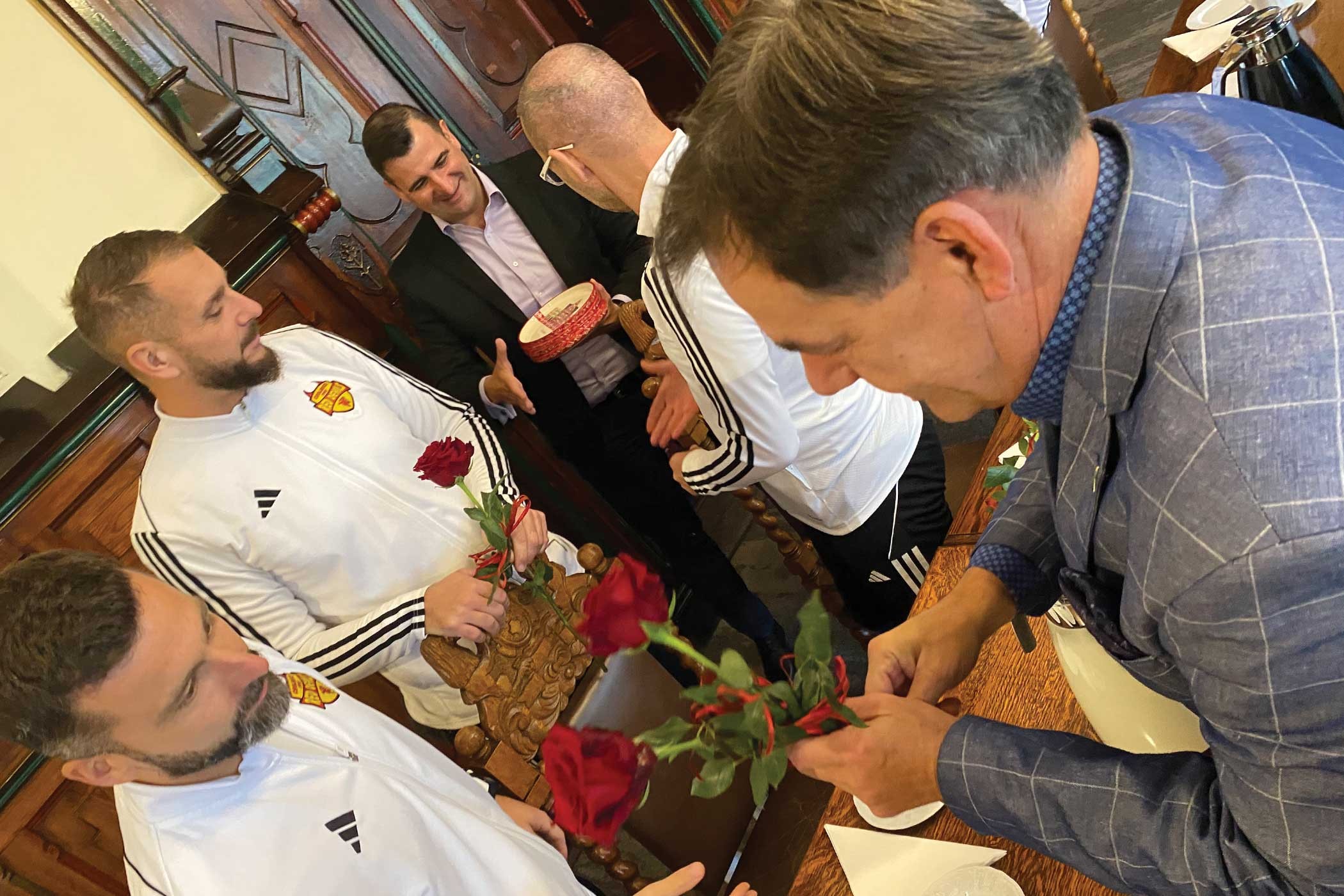 Każdy z gości otrzymał symboliczną różyczkę od burmistrza, a także ozdobny upominek.