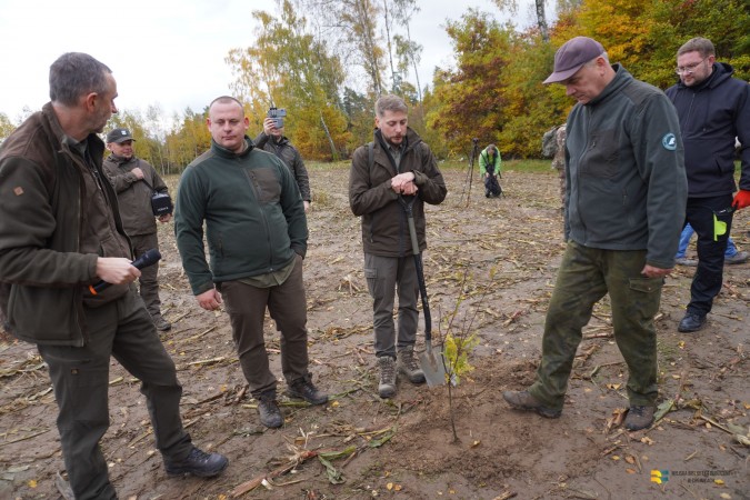 Następnie głos zabrał zastępca nadleśniczego Nadleśnictwa Rytel Leszek Pultyn. Jak wyjaśnił, las sadzi się albo na wiosnę, albo jesienią, stąd taki termin. – „Znajduje się tu dorosły las brzozowy, a my pod spodem posadzimy nowy. Odnowimy ten las gatunkami takimi jak: dęby, głogi czy klony” – mówił. Dodał, że brzoza jest gatunkiem krótkowiecznym, brzozy w tym lesie mają już ok. 80 lat i to jest wiek, kiedy zaczynają umierać. Natomiast teraz, po tych nasadzeniach, pod brzozami zacznie rosnąć nowy las. Leśniczy zwrócił uwagę na zachowanie bezpieczeństwa przy używaniu szpadli. Z kolei pracownik nadleśnictwa Adrian Talaśka, który dzień wcześniej wygłosił w MBP w Chojnicach prezentację o historycznych książkach i podręcznikach leśnych, przypomniał, że jest to akcja „Powrót książki do korzeni”. Zwrócił uwagę na hasło „Książka jest z papieru, papier jest z drewna, drewno jest z lasu”, pokazujące, że książka pochodzi z lasu. To hasło widniało na okolicznościowych pieczątkach znajdujących się na stoisku nadleśnictwa. – „ Ten powrót książki do korzeni chcemy dzisiaj bardzo mocno zaakcentować właśnie przez tę naszą akcję sadzenia” – mówił.