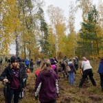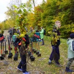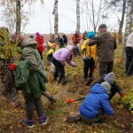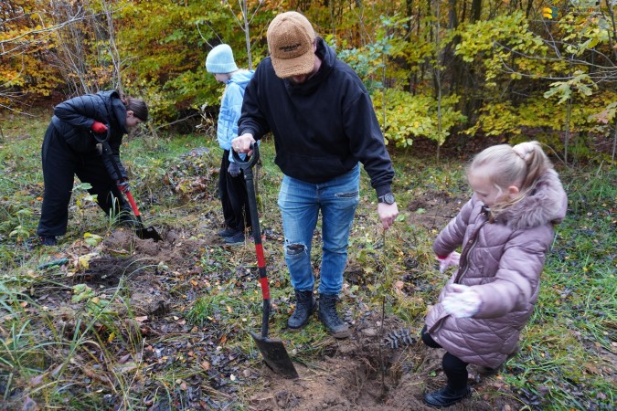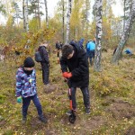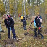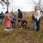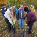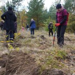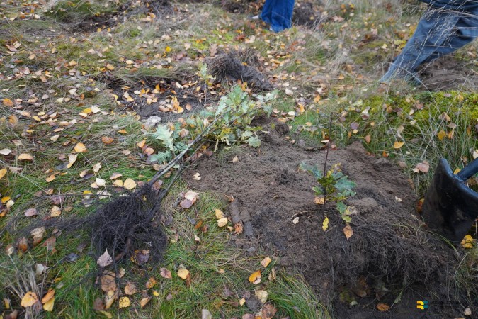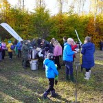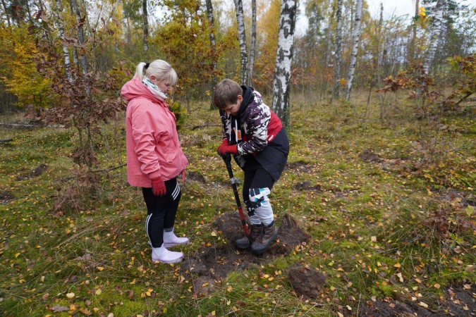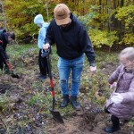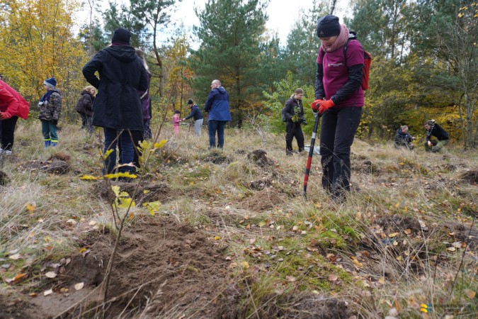 Potem nastąpił instruktaż i praktyczny pokaz sadzenia drzewka przez leśników. Następnie uczestnicy, podzieleni w pary, zabierali przygotowane przez nadleśnictwo szpadle oraz sadzonki i przechodzili do tej części lasu, gdzie wyznaczone już były miejsca do sadzenia. Jak się okazało, samo wykopanie odpowiedniego dołku na korzeń sadzonki nie było łatwe, ale młodszym harcerzom pomagali starsi, a dzieciom – rodzice. Wspierali także pracownicy nadleśnictwa, którzy nie tylko udzielali porad, ale także chwytali za łopaty. Udało się więc posadzić wszystkie przygotowane drzewka. Ci, którzy nie sadzili, mogli w tym czasie zbierać do worków śmieci porzucone w lesie. Uzbierano kilka dużych worków.