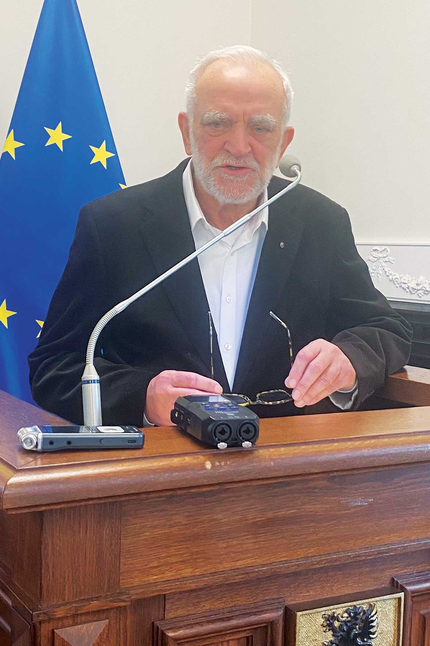- Ze wzruszeniem przyjąłem ten tytuł, który zobowiązuje do wszystkiego, co dobre trzeba czynić w duchu tych wszystkich wartości, jakie są potrzebne i jakie nam przyświecają - mówił Jan Sabiniarz. - Żeby nie przedłużać wypowiedzi, pozwoliłem sobie przygotować po prostu kilka słów na papierze, będą przeczytane od serca. Po czym laureat podzielił się fragmentem swojej twórczości.