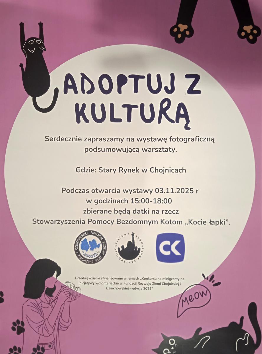 Warsztaty fotograficzne oraz wystawa mają na celu promocję adopcji kotów oraz wsparcie Stowarzyszenia Pomocy Bezdomnym Kotom "Kocie Łapki", działającemu w Chojnicach.