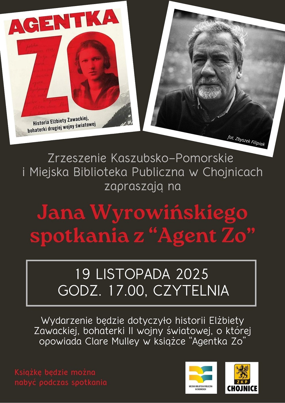 Zrzeszenie Kaszubsko-Pomorskie Oddział w Chojnicach oraz Miejska Biblioteka Publiczna w Chojnicach zapraszają na spotkanie z prezesem ZKP Janem Wyrowińskim. Wydarzenie odbędzie się w środę 19 listopada o godz. 17:00 w Czytelni MBP.