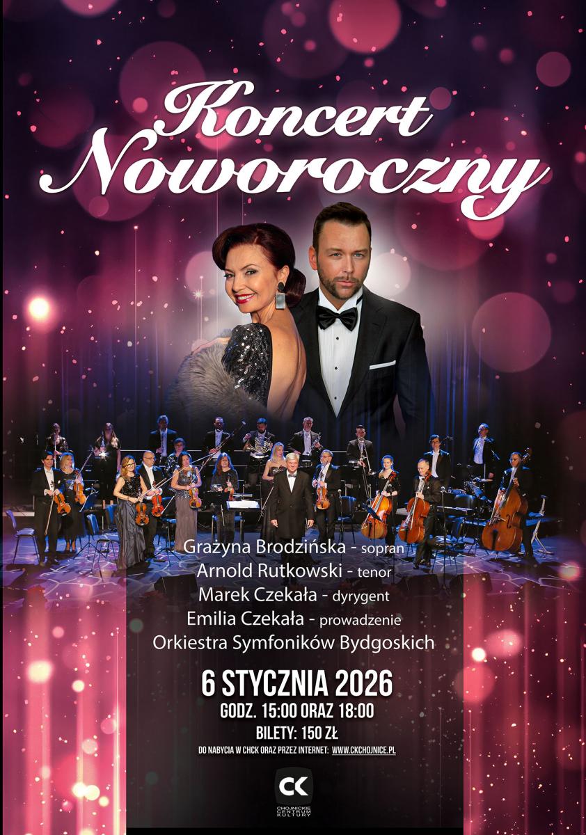 6 stycznia zapraszamy do Chojnickiego Centrum Kultury na Koncert Noworoczny, podczas którego zaśpiewają wspaniali soliści: Grażyna Brodzińska oraz Arnold Rutkowski wraz z Orkiestrą Symfoników Bydgoskich.