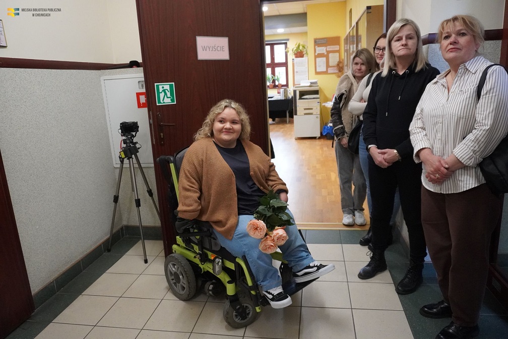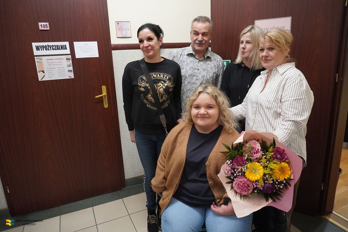 Oglądający chwalili prace Oliwii. Pochwały przekazała także nauczycielka Wioletta Ciepluch Trojanek, która życzyła młodej artystce sukcesów artystycznych. Nie zabrakło kwiatów od klasy, rodziny i pozostałych uczestników wernisażu. W imieniu Miejskiej Biblioteki Publicznej w Chojnicach upominek w postaci książek przekazała wraz z gratulacjami bibliotekarka Weronika Sadowska. W gronie oglądających wystawę znaleźli się także uczniowie klasy 6 SP nr 5 w Chojnicach, którzy akurat przyszli do Czytelni.
