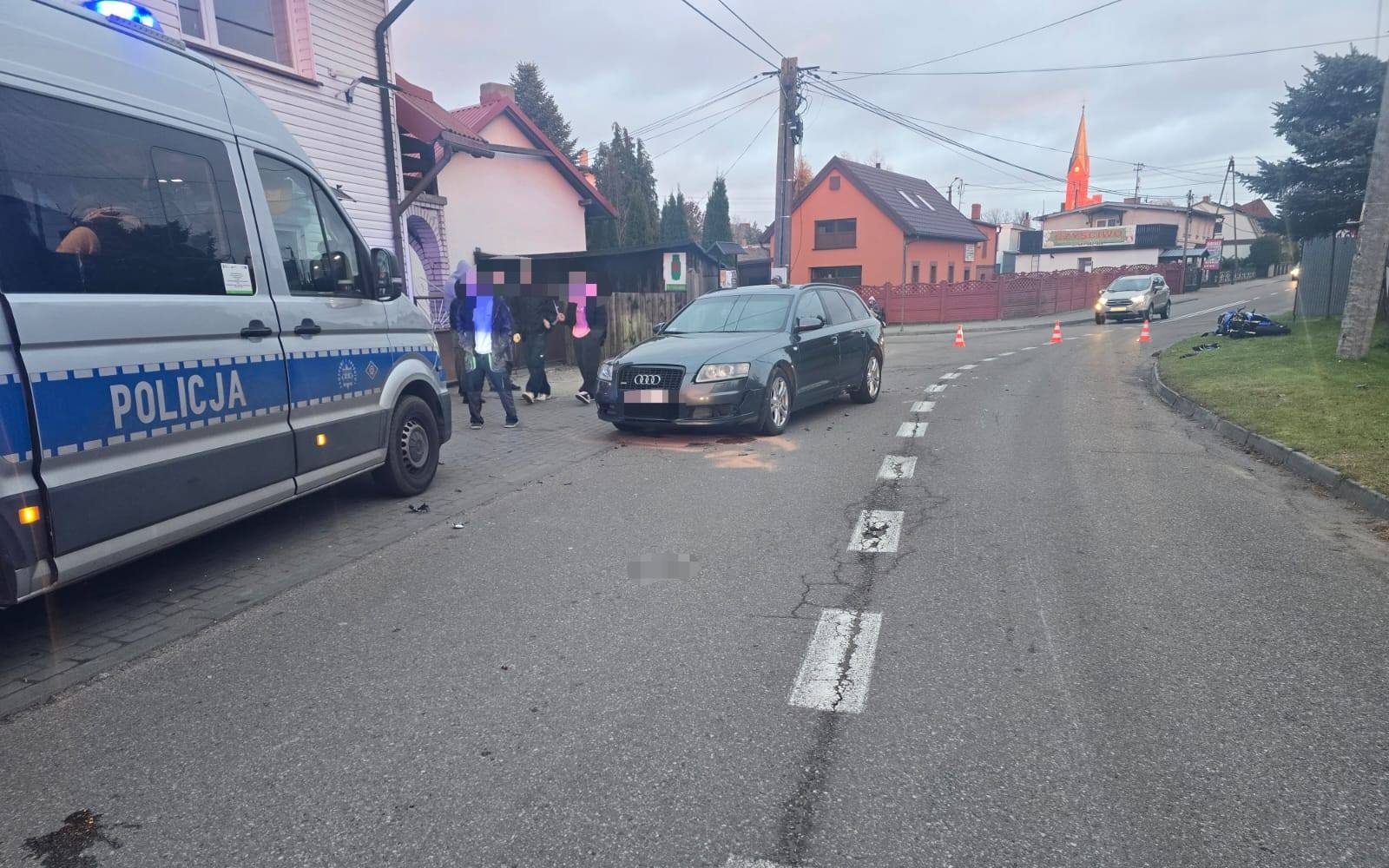 Motocyklista bez kasku zderzył się z Audi