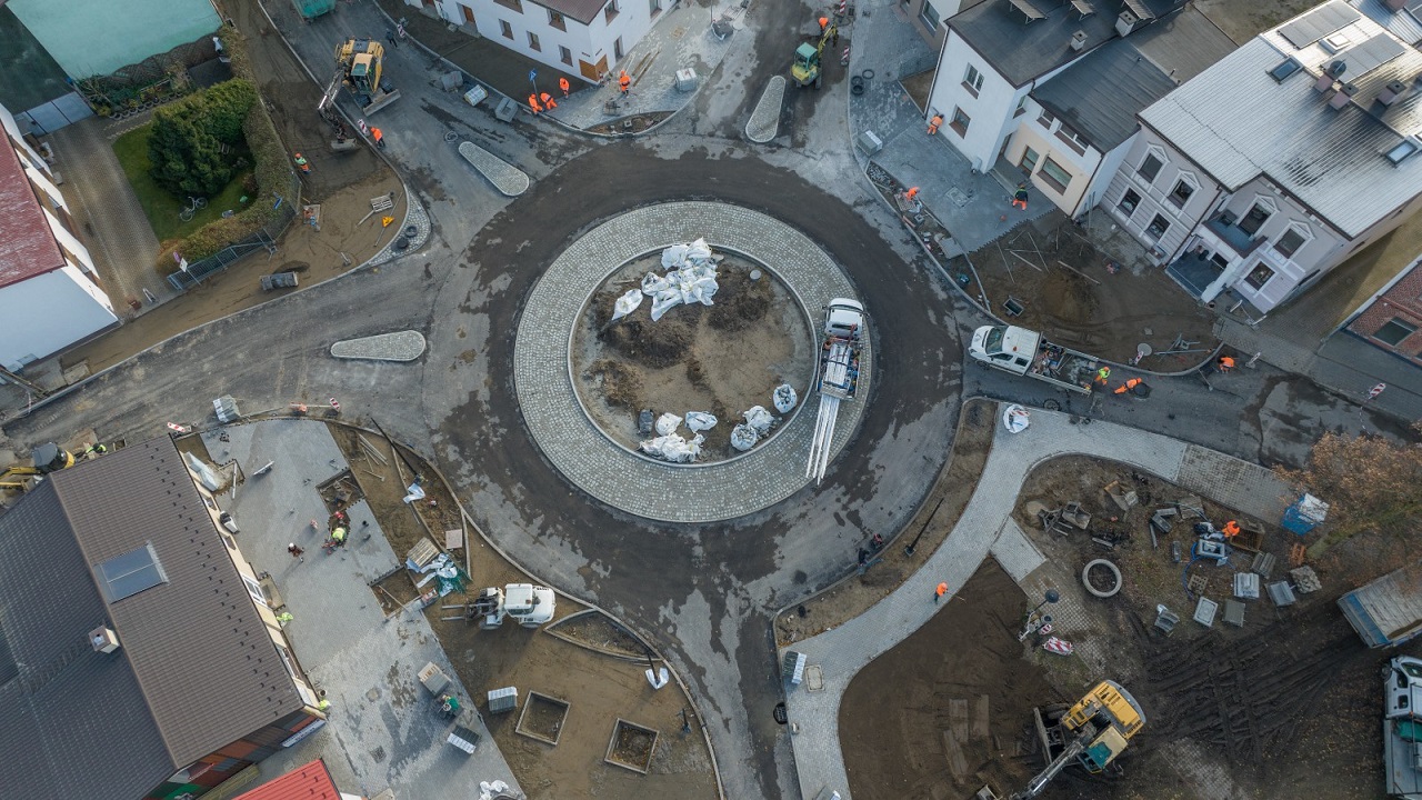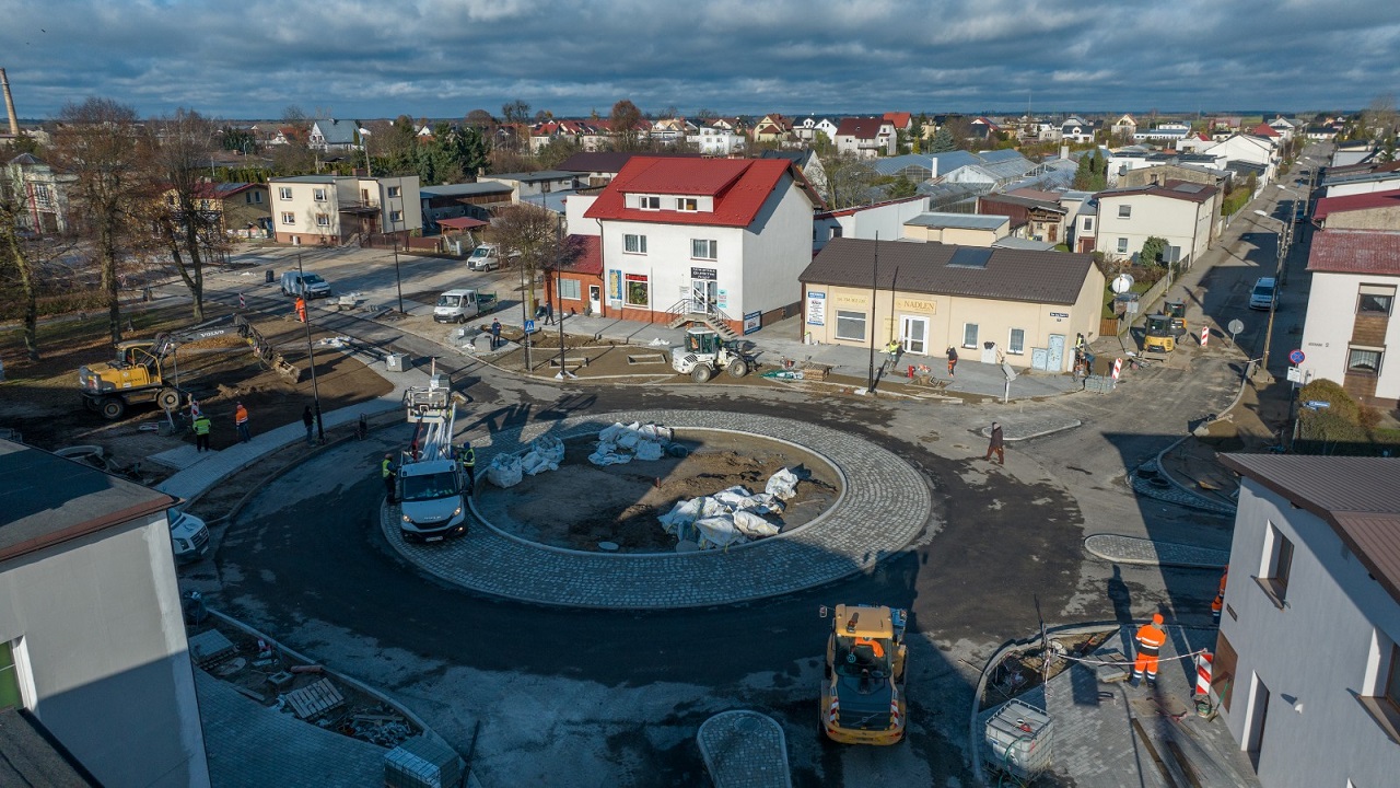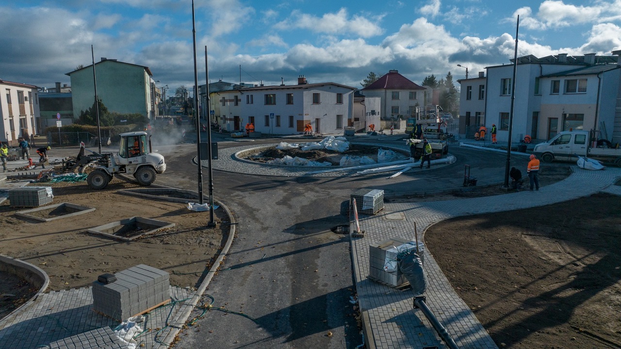 Trzecie rondo w Brusach, przy Placu Jana Pawła II, jest już niemal gotowe. To część prowadzonej w mieście przebudowy ulic obejmującej blisko 2 km dróg.