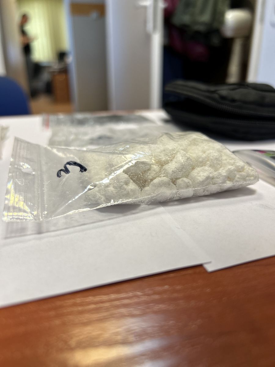 Po krótkim pościgu został zatrzymany. Podczas kontroli policjanci ujawnili przy nim woreczki strunowe z amfetaminą i haszyszem. Funkcjonariusze sprawdzili również miejsce, z którego mężczyzna rozpoczął ucieczkę. Na trawniku odnaleźli czarną saszetkę z kolejnymi porcjami narkotyków. Łączna waga zabezpieczonych substancji, zarówno tych znalezionych przy nim, jak i w miejscu ucieczki, to blisko 50 gramów.