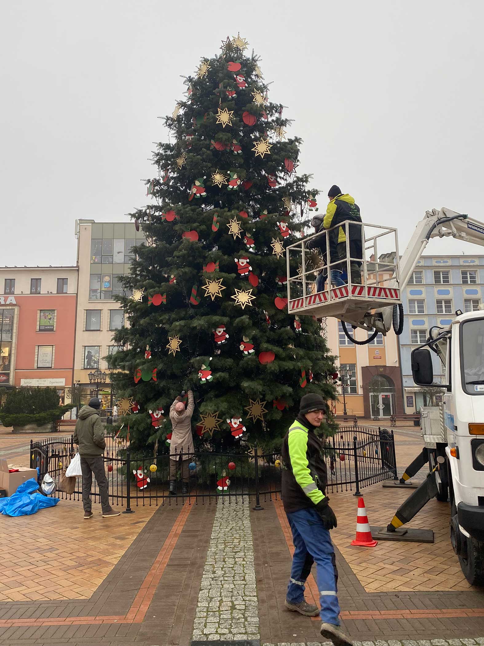 Kiedy zawieszano kolorowe ozdoby na świątecznym drzewku przechodzący mieszkańcy z uśmiechem obserwowali te pierwsze przygotowania do nadchodzących świąt. Dzięki zaangażowaniu ekipy WTZ rynek rozbłysnął ciepłem i radością, wprowadzając wszystkich w magiczny, bożonarodzeniowy nastrój.