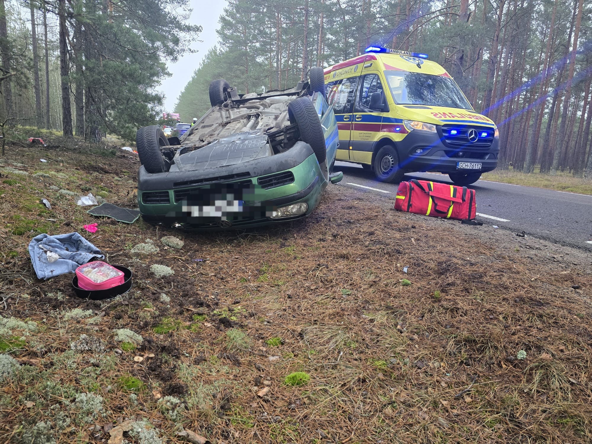 Doszło tam do dachowania samochodu osobowego.