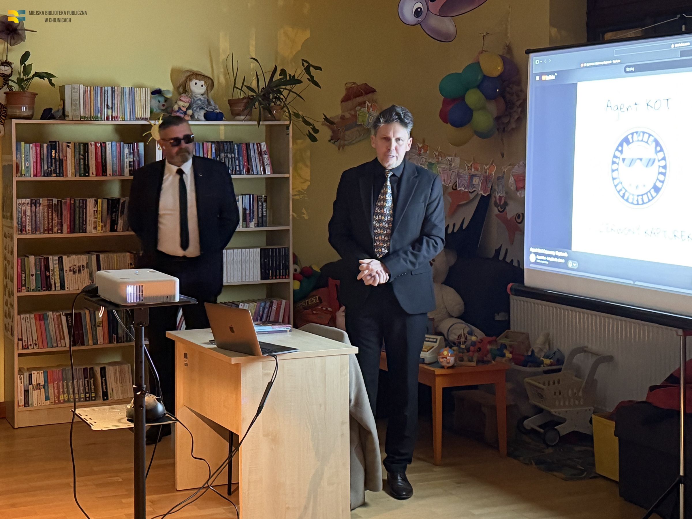 Tuż przed świętami była okazja dowiedzieć się więcej o najnowszej książce Grzegorza Szlangi „Agent Kot” i kupić ją dla siebie lub na świąteczny prezent. Autor zaprezentował książkę w poniedziałek 22 grudnia 2025 roku w Wypożyczalni i Czytelni dla Dzieci Miejskiej Biblioteki Publicznej w Chojnicach.