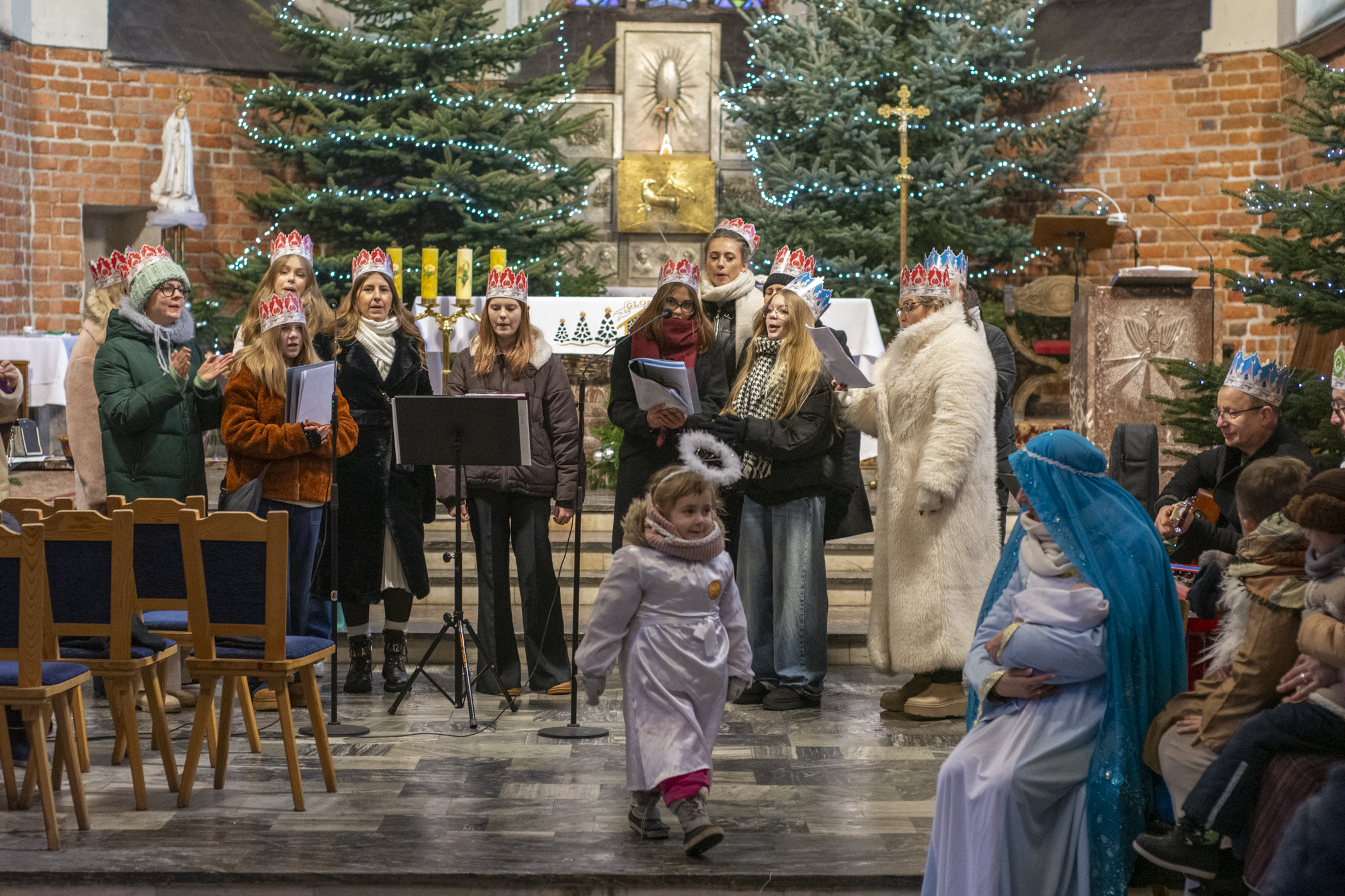 Zwieńczeniem orszaku było wspólne śpiewanie kolęd, które wypełniło wnętrze świątyni ciepłem i świąteczną atmosferą. Przy akompaniamencie zespołu „Z Głębi Serca” uczestnicy stworzyli podniosły, a zarazem pełen radości nastrój. Dźwięki znanych kolęd jednoczyły wszystkich obecnych, niezależnie od wieku, sprzyjając chwili zadumy i wspólnoty.