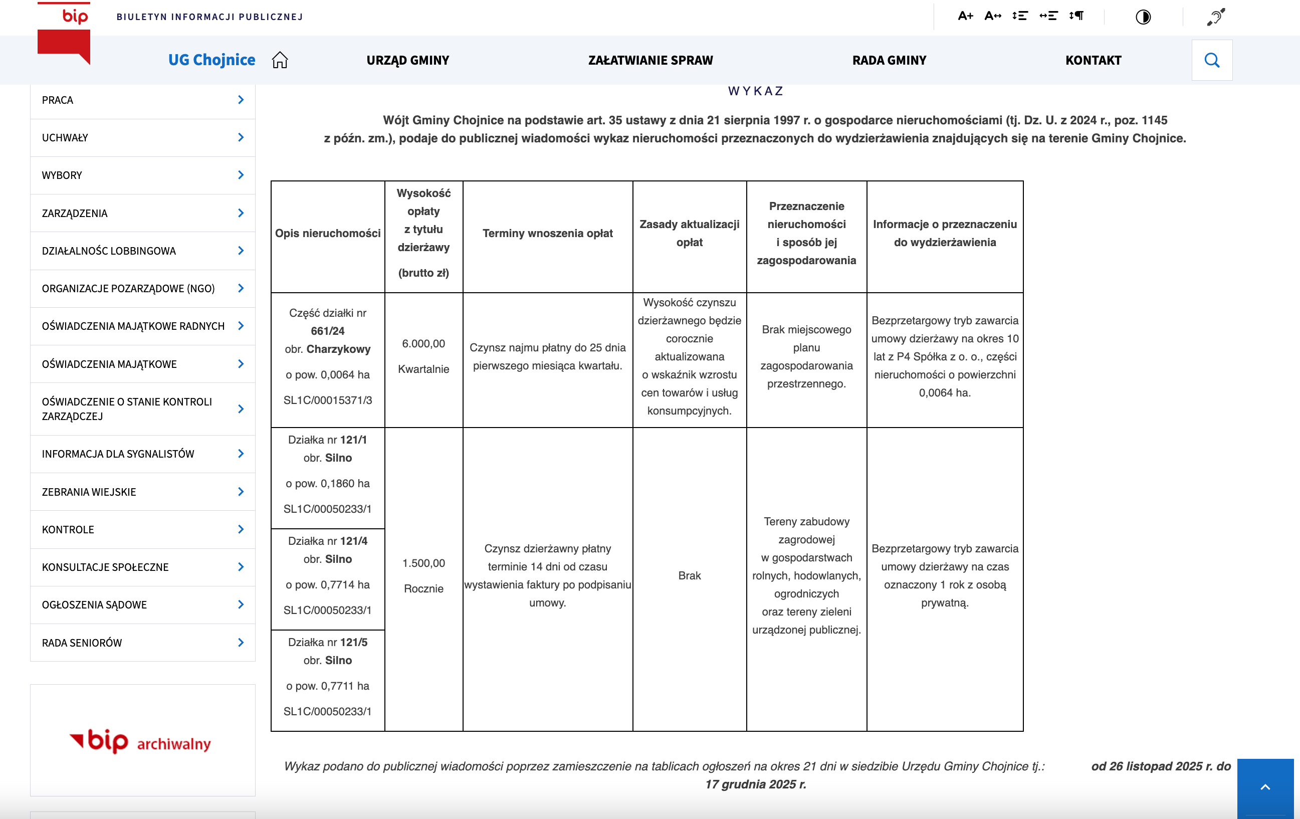 - Strony postępowania zostały zawiadomione o wszczęciu postępowania administracyjnego, został im zapewniony czynny w nim - poinformował Zbigniew Szczepański. - Wybór lokalizacji wynikał z dbałości o ład przestrzenny i z opinii Rady Sołeckiej wydanej w związku z prowadzonym postępowaniem o ustalenie lokalizacji inwestycji celu publicznego polegającego na budowie stacji bazowej telefonii komórkowej P4 CHJ2301A wraz z instalacją radiokomunikacyjną niezbędną infrastrukturą, na działce 604/2 w Charzykowach. Planowana wieża w dużej części zostałaby ukryta w istniejącym drzewostanie. W opinii Rady Sołeckiej wskazane zostały trzy potencjalne lokalizacje masztu, m.in. dz. nr 661/24 - i ta propozycja została uwzględniona.
