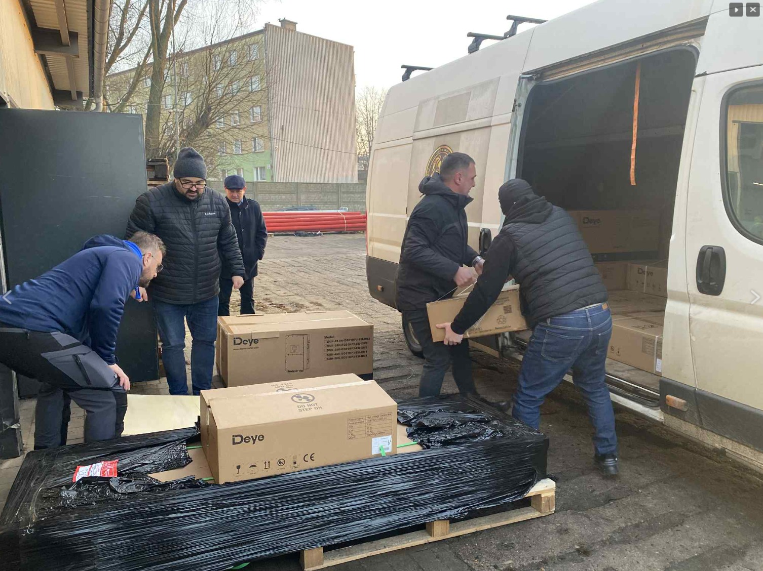 W skład zestawu, który otrzymali z Chojnic Ukraińcy weszły: inwerter Deye SUN-30K SG01HP3 EU – 1 szt., akumulator Deye BOS-G 5,12 kWh – 8 szt., moduł Deye BMS – 1 szt., szafy Deye Rack 13-Mod – 1 szt.