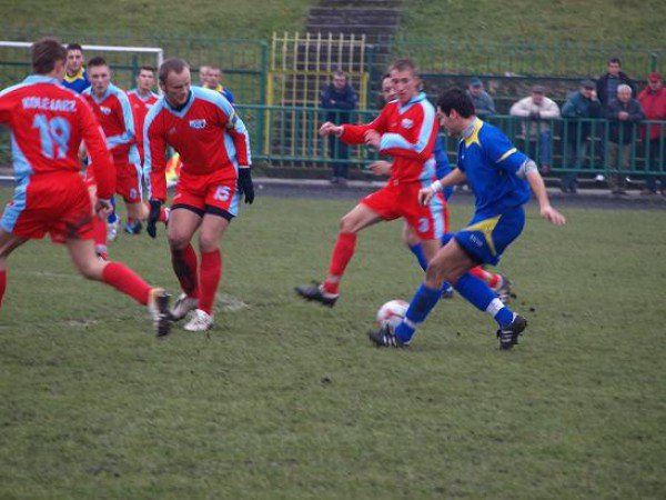 Pierwsza bramka w tym spotkaniu padła dla gości w 20. minucie meczu. Co prawda sędzia liniowy pokazywał wyraźnie "spalonego", jednak arbiter główny po konsultacji z owym sędzią liniowym uznał gola dla Błękitnych. Do przerwy było 0:1. Honor Kolejarza uratował Dawid Sikorski, który doprowadził do remisu, zdobywając tym jeden punkt dla Kolejarza. Kolejarz zgromadził tylko 9 punktów w całej rundzie jesiennej i zajmuje ostatnie miejsce w tabeli.