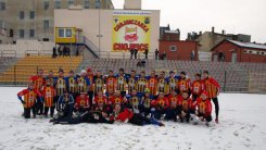 Po pamiątkowym zdjęciu wszystkich zawodników spotkania, drużyny podzieliły się na żółto-czerwonych oraz niebiesko-żółtych. W składzie żółto-czerwonych zagrali m.in.: Andrzej Borowski ze swoim synem, wiceprezes klubu Jarosław Klauzo, Tomasz Pestka czy trenerzy Leszek i Marek Szank. W drugiej drużynie zagrali m.in.: Wiesław Piekarski, Karol Lewandowski, Jakub Skiba, Adrian Bilicki. Cały mecz odbywał się w miłej i przyjaznej atmosferze. Każdy z piłkarzy znajdujących się na murawie za wszelką cenę chciał zdobyć pierwszą bramkę w tym roku. Zaszczyt ten przypadł wiceprezesowi klubu Jarosławowi Klauzo. Mecz obfitował w grad goli. Po ciężkiej walce w śniegu wygrała drużyna żółto-czerwonych wynikiem 9:3. Życzymy wszystkim osobom związanym z klubem wszystkiego najlepszego w nowym roku, a drużynie Chojniczanki historycznego awansu do II ligi.