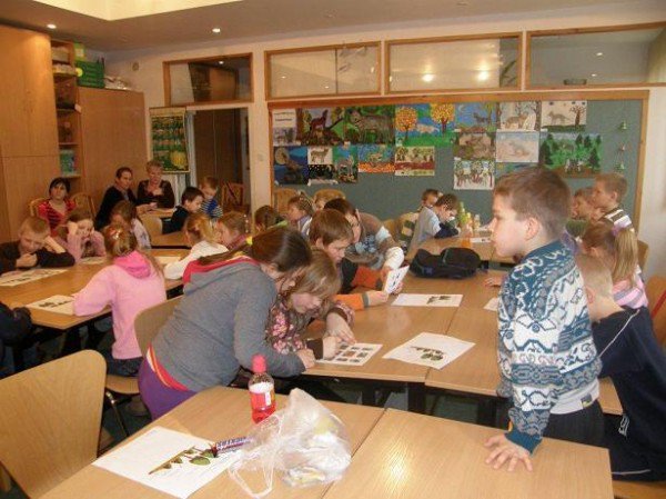 Dzieci uczestniczyły w zajęciach na temat: Warstwowa budowa lasu oraz leśne zwierzęta. Zajęcia prowadziła p. Magdalena Kochanowska – pracownik Parku Narodowego. Uczniowie poprzez zabawę poznawali poszczególne warstwy naszych lasów oraz zapoznawali się ze zwierzętami żyjącymi w lasach. Wszyscy chętnie uczestniczyli w konkursach i zabawach. Najwięcej emocji wzbudziła zabawa w rozpoznawanie odgłosów zwierząt.