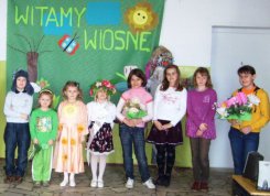 W dniu dzisiejszym (25 marca) uczniowie uczęszczający na zajęcia świetlicowe w Szkole Podstawowej w Wielkich Chełmach przywiatali wiosnę. Z okazji jej nadejścia przygotowali przedstawienie, podczas którego zaśpiewali również kilka piosenek. Nadejściu wiosny towarzyszył bocian, który właśnie dziś przyleciał do Wielkich Chełmów.