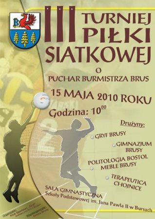 Zapraszamy na III Turniej Piłki Siatkowej o Puchar Burmistrza Brus, który odbędzie się 15 maja o godz. 10.00 na sali gimnastycznej SP im. Jana Pawła II w Brusach.