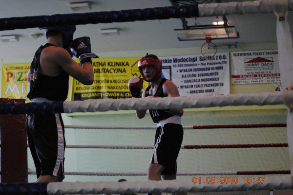 1. Adept 36 kg Jarosław Pubanc stoczył niepunktowaną walkę towarzyską z Krystianem Krzemińskim „Nowi Boxing” Polnica.