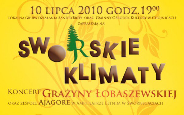 W ramach "Sworskich Klimatów" odbędzie się m.in.: koncert Grażyny Łobaszewskiej oraz zespołu Ajagore, regaty kajakowe, plener malarski. Organizatorem imprezy jest Lokalna Grupa Działania Sandry Brdy i Gminny Ośrodek Kultury.
