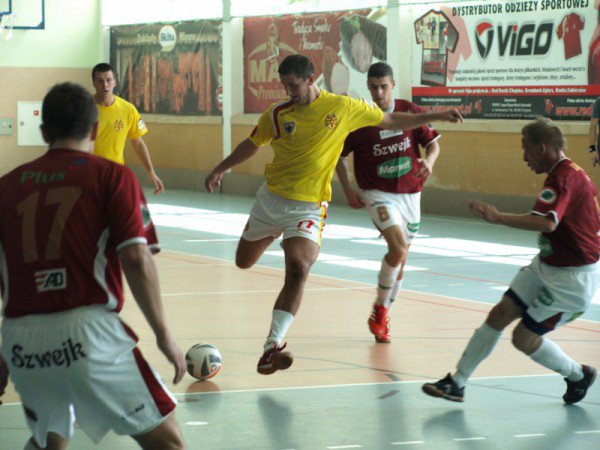 Tydzień temu torunianie na własnym boisku ulegli drużynie prowadzonej przez trenera Tomasza Aftańskiego 5:4. Przypomnijmy, że drużyna gości spadła z Ekstraklasy Futsalu. Goście prowadzili do 11. minuty po bramce Adriana Citki. Cztery minuty później Artur Chrzonowski wyrównał. Przy stanie 1:1 w 19. minucie ,,Kazek" po indywidualnej akcji dał nam prowadzenie, którego Red Devils nie oddało już do końca meczu. W pierwszej połowie (mecz rozegrano systemem 2x35 minut ) do bramki gości trafiali jeszcze: Marek Widzicki, Dominik Depta (którego przejście do Czerwonych Diabłów jest już niemal przesądzone) oraz Łukasz Sobański. Słowa uznania należą się również Jackowi Burglinowi, który na trzy minuty przed końcem pierwszej połowy w przeciągu pięciu sekund popisał się fenomenalnymi interwencjami trzykrotnie ratując chojniczan przed utratą gola. Druga część spotkania również zakończyła się zwycięstwem gospodarzy 2:1 po bramkach Dominika Depty oraz Łukasz Sobańskiego. Po dobrym spotkaniu Red Devils zasłużenie wygrało z Marwitem Toruń 7:3. W naszym zespole zabrakło Daniela Kępy i Mihaila Sundeev'a (kontuzje), Jakuba Mączkowskiego, który wyjechał do Serbii na Akademickie Mistrzostwa Świata oraz Piotra Papierowskiego, z którym zarząd klubu definitywnie rozstał się z powodów dyscyplinarnych. Klubu nie wzmocni również Tomasz Broner, który nie porozumiał się z działaczami odnośnie kontraktu.