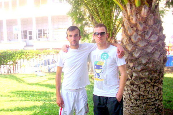 Marek Kobus (z prawej) z managerem Arionu Nikozja, Gevorgiem Sargsyan'em.
