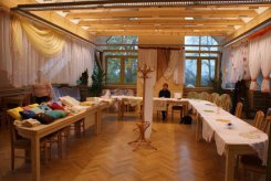 Dość nietypowo wyglądała dzisiaj (22.10) sala konferencyjna Urzędu Gminy w Chojnicach. Przyozdobiona firankami, serwetkami i poduszkami stała się żywą reklamą Spóldzielni Socjalnej "Unii-Versal" z Ciechocina. Spółdzielnia znana jest też z pamiątkowego produktu regionalnego tzw. sworskich gaci.