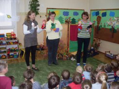 W Przedszkolu Nr 1 w Brusach każde dziecko doskonale zna bajkę o małej dziewczynce, która spotkała na swej drodze groźnego wilka. Nauczycielki Wiesława Gierszewska i Aleksandra Sielska wspólnie z panią Anną Gawin postanowiły przedstawić ją w formie teatrzyku kukiełkowego. Samodzielnie przygotowana scenografia i doskonale dobrane podkłady muzyczne przeniosły przedszkolaków w magiczny świat bajek, gdzie zawsze zwycięża dobro. Warto wspomnieć, iż w listopadzie nauczycielki zaproszą dzieci na kolejną opowieść. Tym razem przybliżymy historię „Brzydkiego Kaczątka".