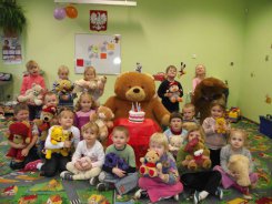 Miękki, puchaty i taki z łatką. 25 listopada swoje święto obchodzi najmilsza zabawka, najlepszy przyjaciel dzieci i niezastąpiona przytulanka przy zasypianiu – Pluszowy Miś. Mimo coraz nowocześniejszych i coraz bardziej atrakcyjnych zabawek, moda na misie nie przemija, bo "czy to jutro, czy to dziś, wszystkim jest potrzebny Miś!"W naszym przedszkolu w Kosobudach po raz pierwszy obchodziliśmy to święto. Dzieci z wielkim zainteresowaniem wysłuchały wierszy oraz historii powstania pluszowego misia, która zaczęła się w 1902 roku. Wykonały prace plastyczne pt: „Portret mojego misia”, a później zaprezentowały swoją przytulankę podczas ,,Parady Misiów". Nie zabrakło również zabaw i tańców do piosenek w wykonaniu m.in. Majki Jeżowskiej pt.: „Pokochaj pluszowego misia”.