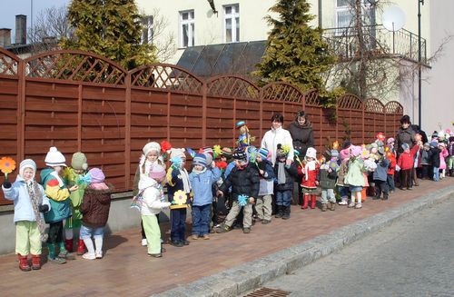 W doskonałych humorach i ze śpiewem na ustach dzieci z Przedszkola Nr 1 witały w Brusach wiosnę. Biedronki, Misiaki, Zuchy i Skrzaty dumnie maszerowały ulicami miasta trzymając w rękach kwiatki. Mamy nadzieję, że już wkrótce dni staną się dłuższe i cieplejsze pozwalając przedszkolakom obserwować budzącą się do życia przyrodę. A zatem: Witaj wiosno !!!